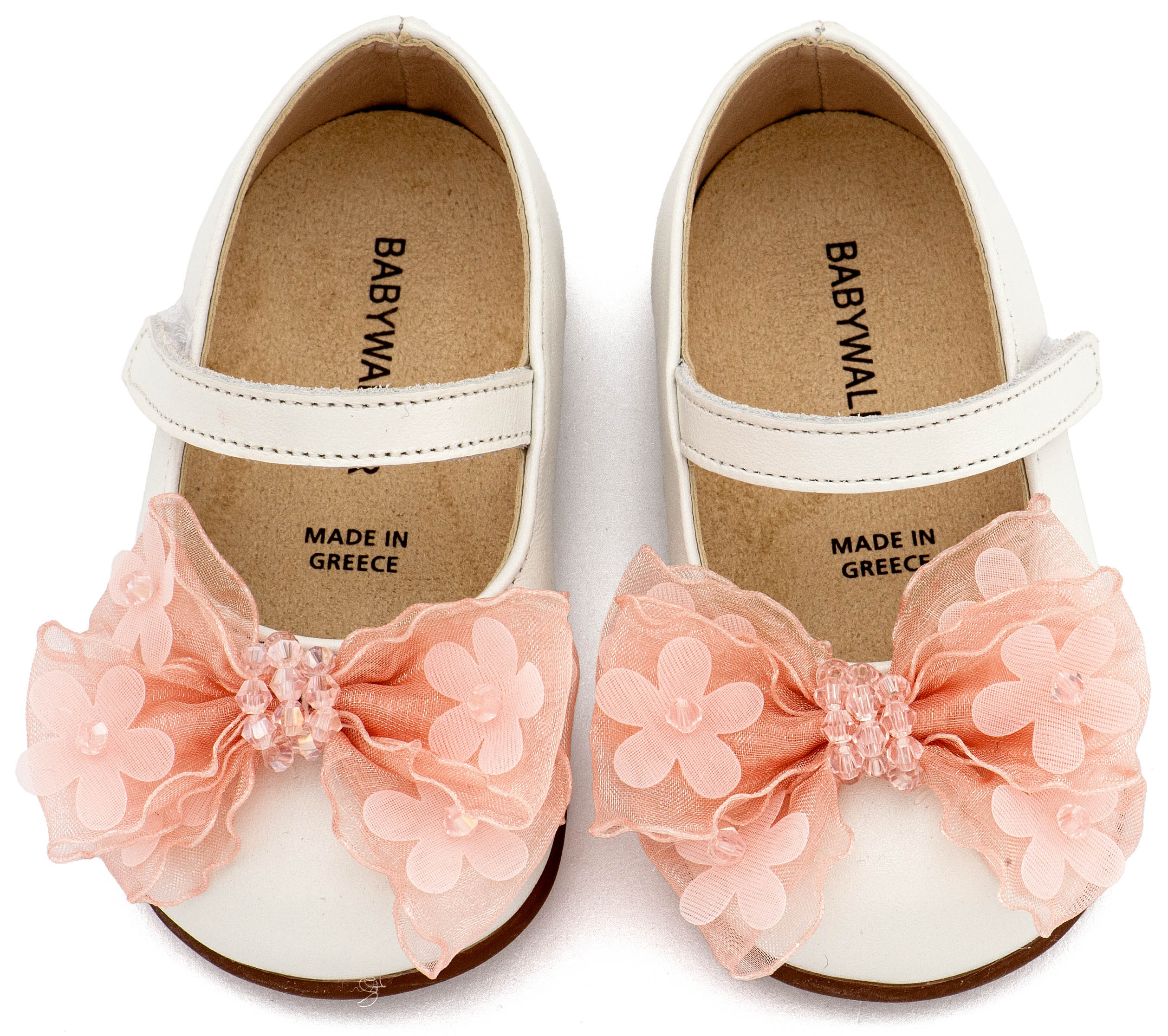 Δερμάτινο Γοβάκι Μονή Μπαρέτα Φιογκάκι Οργάντζας σε Εκρού Ροζ Χρώμα Babywalker PRI2659. Για την επιλογή του κατάλληλου μεγέθους συμβουλευτείτε τον οδηγό μεγεθών της Babywalker.