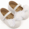 Δερμάτινο Γοβάκι Μονή Μπαρέτα Φιογκάκι Οργάντζας σε Λευκό Χρώμα Babywalker PRI2659. Για την επιλογή του κατάλληλου μεγέθους συμβουλευτείτε τον οδηγό μεγεθών της Babywalker.