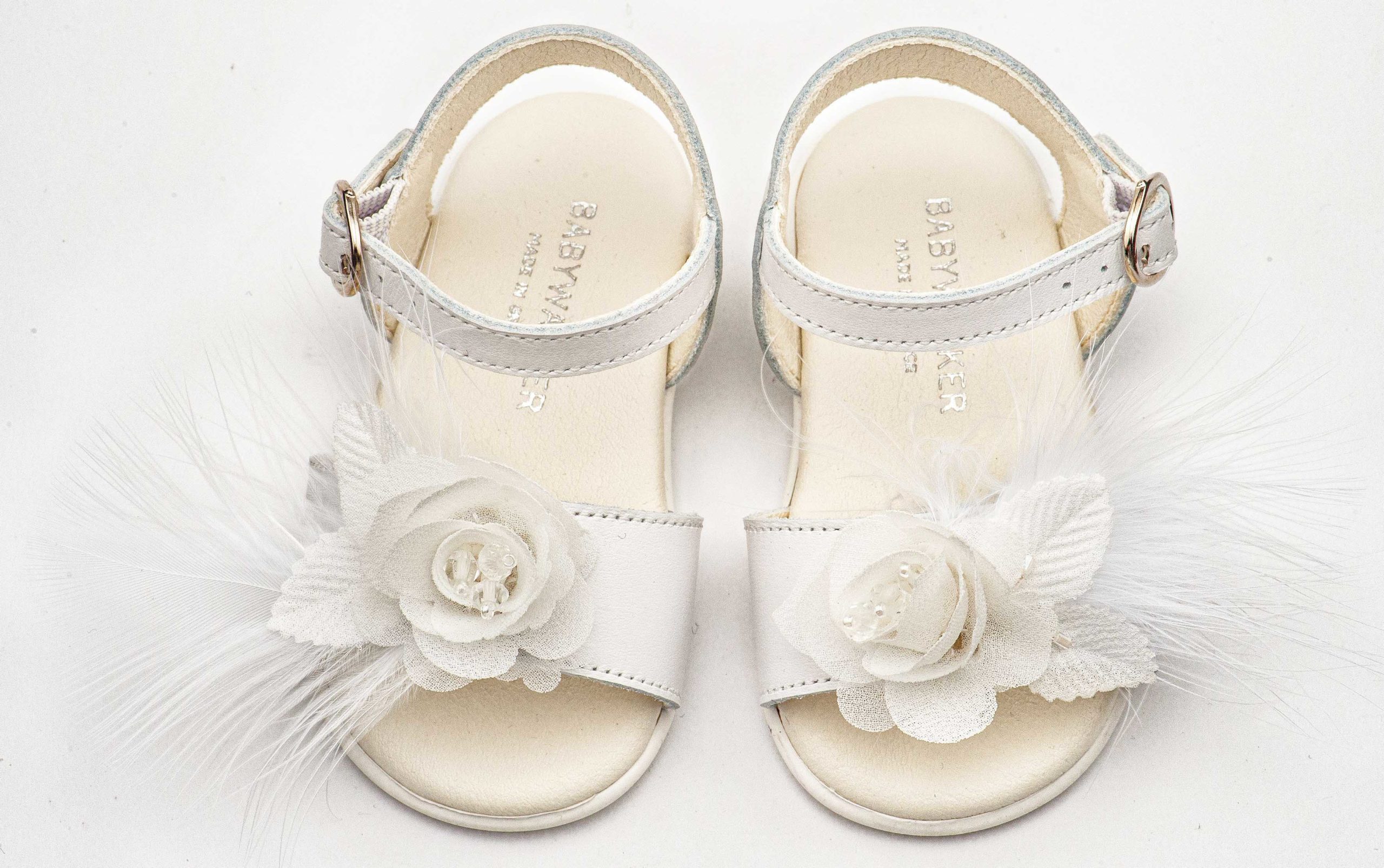 Δερμάτινο Πέδιλο Διακοσμημένο με Χειροποίητο Λουλούδι με Πούπουλα σε Λευκό Χρώμα Babywalker PRI2662. Για την επιλογή του κατάλληλου μεγέθους συμβουλευτείτε τον οδηγό μεγεθών της Babywalker.