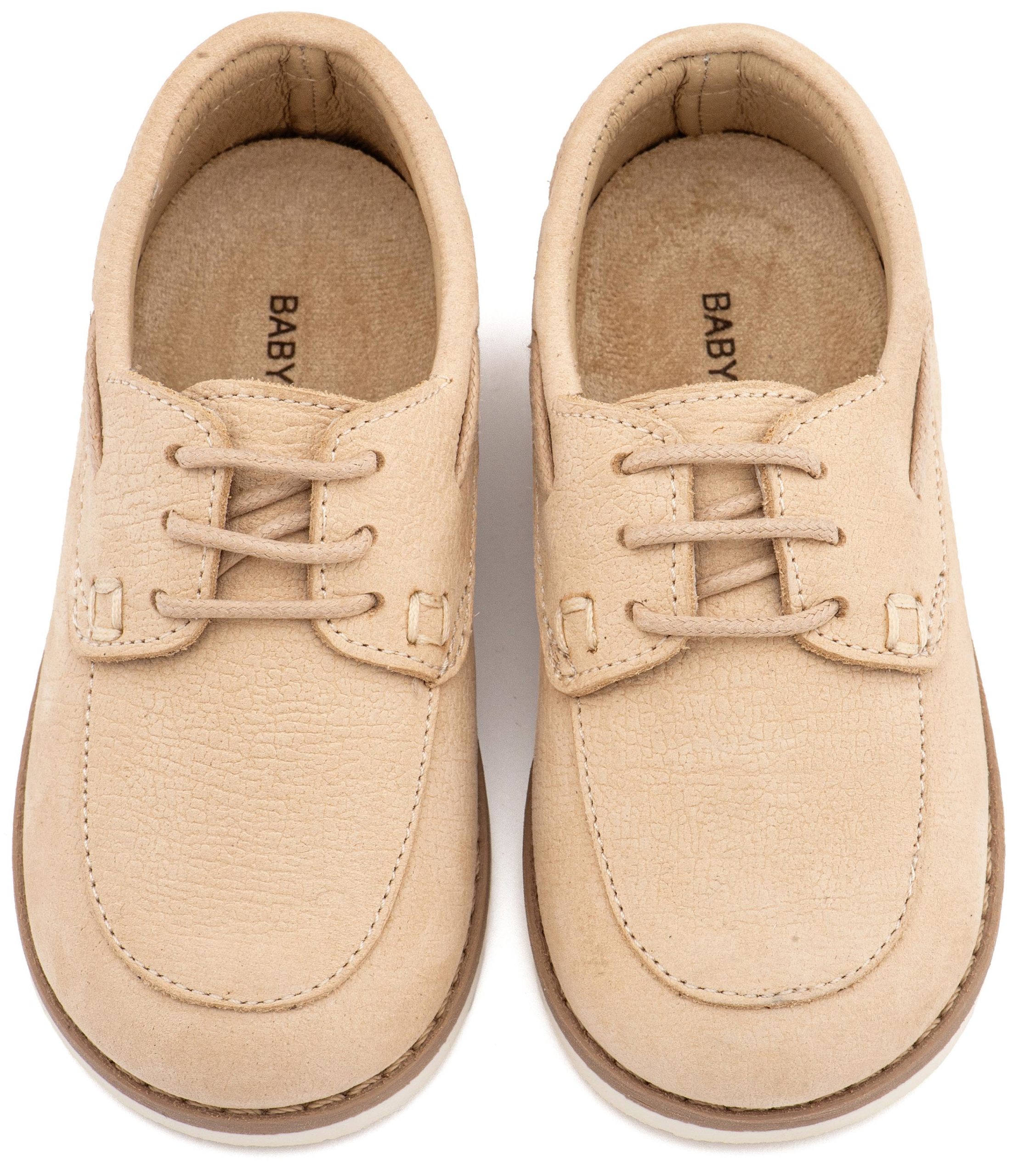 Δετό Δερμάτινο Μοκασίνι από Δέρμα Ναμπούκ με Κορδόνι σε Μπεζ Χρώμα Babywalker BW4308. Για την επιλογή του κατάλληλου μεγέθους συμβουλευτείτε τον οδηγό μεγεθών της Babywalker.